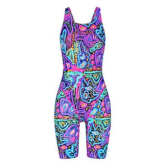 ALWAYS CHECK THE SIZE CHART (IN IMAGE SECTION ABOVE). SIZES PROVIDED ARE UK SIZES, BE SURE TO MEASURE AND CHECK THE SIZE CHART BEFORE ORDERING. The colourful AMANZI Luminaria Kneelength swimsuit can be used for training or as an entry level racing swimsuit. This kneelength swimsuit has been engineered tofit the needs of competitive and active swimmers, as well as triathletes and open water swimmers. The wide shoulder straps and back band are placed between the shoulder blades, allowing for maximum freedom and ease of movement whilst swimming. Made with AMANZI Armor Ecoâ„¢ a high-performance swimwear fabric that exemplifies sustainability, durability, and comfort. This eco-friendly fabric is designed and milled in Italy, combining the latest advancements in chlorine resistance with reduced environmental impact. The wide open back follows the natural contour of the body, providing an ergonomic fit and superior comfort. Features: Chlorine Resistant With a UPF 50+ rating, AMANZI Armor Ecoâ„¢ provides outstanding protection against the sun´s harmful UV rays. Even after extended use, AMANZI Armor Ecoâ„¢ retains its shape, ensuring consistent performance over time. The fabric´s luxurious feel is gentle on the skin, providing ultimate comfort Quick drying Front Lined Leg Height sits approx. 5 cm above the knee. Made from 51% recycled polyester and 49% polyester from PBT