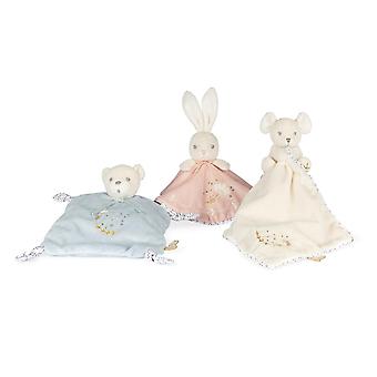 A part of the Perle range of Baby product from Kaloo is this lovely cream mouse hug Doudou. This lovely mouse doudou (comforter) is made from super soft cream micro-velvet plush. The small mouse hugging the doudou is made from the same cream plush and and he has grey embroidered eyes, nose and mouth. The comforter is embellished with a flower embroidery in gold, white and grey and has patterned edges.