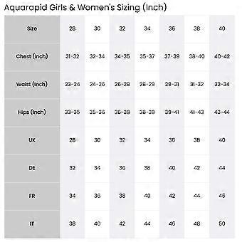 ALWAYS CHECK THE SIZE CHART (IN IMAGE SECTION ABOVE). SIZES PROVIDED ARE UK SIZES, BE SURE TO MEASURE AND CHECK THE SIZE CHART BEFORE ORDERING. The stunning Aquarapid Women´s Kris Peace Swimsuit combines exceptional levels of comfort and performance with a vibrant and colourful design. An excellent training choice for serious and competitive swimmers, this bright swimsuit has been meticulously designed and constructed to get the most out of your pool time. It is made from Aquarapid´s high quality DEFENDER fabric, which is chlorine-resistant and extremely long-lasting to give you the perfect fit time and time again. It has been designed with the racer´s needs in mind. A high front and back leg cut provides maximum freedom of movement for the legs during kicks, while also reducing friction. The costume´s racerback design is dynamically shaped and offers a perfect fit, making it easier for water to flow along the body and reducing drag. With Aquarapid´s love-inspired Peace print sure to stand out poolside, this costume really is the perfect all-round choice. FEATURES: High front and back leg cut Dynamically shaped racerback design Perfect fit makes it easier for water to flow on the body, reducing drag Breathable and fast drying fabric UV (UPF 50+) and chlorine resistant 100% PBT polyester DEFENDER fabric