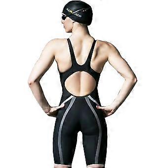 ALWAYS CHECK THE SIZE CHART (IN IMAGE SECTION ABOVE). SIZES PROVIDED ARE UK SIZES, BE SURE TO MEASURE AND CHECK THE SIZE CHART BEFORE ORDERING. The Kronos Open Back Kneesuit in Black from Aquarapid is their top-level racing suit, designed to enhance and improve your swimming ability. The ��Smart Skeleton�� of the suit provides a more stable position in the water which considerably improves performance, enhancing flexibility in the upper body area and allowing fluidity. A synergy of tapes and ergonomic form-fitting panels helps raise the legs for a more effective, horizontal position stabilizing the core to avoid snaking. Comfort straps, thanks to the elastic finishes, reduce shoulder pressure, ensuring they will never compromise movement enabling fluidity and maximum distance per stroke. Features:�� Smart Skeleton�� Ergonomic Form-Fitting Panels�� Comfort Straps�� Two-way Mechanical Stretch Border�� FINA Approved