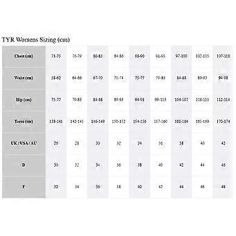 ALWAYS CHECK THE SIZE CHART (IN IMAGE SECTION ABOVE). SIZES PROVIDED ARE UK SIZES, BE SURE TO MEASURE AND CHECK THE SIZE CHART BEFORE ORDERING. TYR Hexa TrinityFit swimsuit in Black and Blue is a great choice for regular pool use. Constructed with TYR’s most durable textile, Durafast Elite™, this performance swimsuit utilizes high denier poly fiber and innovative circular knit construction to combine the strength and colorfastness of polyester with the comfort of spandex. Featuring a medium neckline, sleek/flexible straps, open, triple-bound X-back, and high cut leg, the TrinityFit is ideal for athletes who want comfortable coverage during every swim. TYR performance swimsuits are fully lined, provide UPF 50+ sun protection, 360-degree range of motion, and an antimicrobial lining for freshness. All Durafast Elite™ suits are chlorine proof and sustain an impressive 300+ hours of performance. Features: Constructed with Durafast Elite™ for durability and performance Innovative circular knit construction for strength and colorfastness Medium neckline for comfortable coverage Sleek and flexible straps for enhanced mobility Open, triple-bound X-back design for a secure fit High cut leg for an athletic and stylish look Fully lined for added comfort and support Provides UPF 50+ sun protection Offers a 360-degree range of motion for unrestricted swimming Antimicrobial lining keeps the swimsuit fresh Chlorine-proof for lasting quality Sustains an impressive 300+ hours of performance TYR Durafast Elite™: 94% Polyester / 6% Spandex