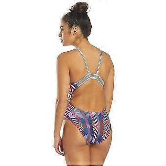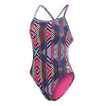 Make a splash at the pool with the new colourful girls Dolfin Uglies Revibe Diamond Tie Back swimsuit, featuring an eye-catching multi-coloured print. This Dolfin Uglies Revibe Diamond swimsuit is a great choice for swimmers that require a new swimsuit for swim training sessions, or for regular pool use. The swimming costume´s material make-up consists of Micro Nylon, giving the costume great flexibility and make it fast-drying. The material also contains Xtra Life Lycra which provides resistance to chlorine and UV rays and ensures the swimsuit holds is shape for longer. A Tie back design allows for easy adjustment so that you can get the best fit, the thin straps allow for maximum range of motion. Features: Colourful eye-catching print Binding on straps includes signature Uglies candy stripe in coordinating colour 4 way stretch, for great shape retention. Contains Xtra Life Lycra® providing excellent chlorine resistance. Micro Nylon fibres give the costume great flexibility and quicker drying times. Fully lined. Performance Cut: Dolfin´s highest leg cut sits just above the hips. Material:- 91% Micro Nylon / 9% Xtra Life Lycra
