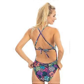 Make a splash at the pool with the new girls Dolfin Uglies Revibe Sao Paolo Tie Back swimsuit, featuring a floral inspired print. This Dolfin Uglies Revibe Sao Paolo swimsuit is a great choice for swimmers that require a new swimsuit for swim training sessions, or for regular pool use. The swimming costume´s material make-up consists of Micro Nylon, giving the costume great flexibility and make it fast-drying. The material also contains Xtra Life Lycra which provides resistance to chlorine and UV rays and ensures the swimsuit holds is shape for longer. A Tie back design allows for easy adjustment so that you can get the best fit, the thin straps allow for maximum range of motion. Features: Colourful floral inspired print Binding on straps includes signature Uglies candy stripe in coordinating colour 4 way stretch, for great shape retention. Contains Xtra Life Lycra® providing excellent chlorine resistance. Micro Nylon fibres give the costume great flexibility and quicker drying times. Fully lined with solid coordinating colour. Performance Cut: Dolfin´s highest leg cut sits just above the hips. Material:- 91% Micro Nylon / 9% Xtra Life Lycra