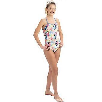 Train in the Girl´s Dive Deep Double Strap Keyhole Back Swimsuit which is unique and eye-catching from Dolfin Uglies. Printed with a vibrant multicoloured pattern, this swimsuit stands out and looks beautiful both in and out of the water. Constructed from a durable blend of polyester and spandex, this Uglies suit offers excellent durability and resistance to chlorine, while still ensuring a very comfortable and secure fit. The Swimsuit is fully lined to further the comfort of the suit. The double strap offers you with added comfort and support. Perfect for regular training sessions and leisurely trips to the pool. Features: Double Strap Durable Material Medium Leg Height Fully Lined Bright Pattern/Print
