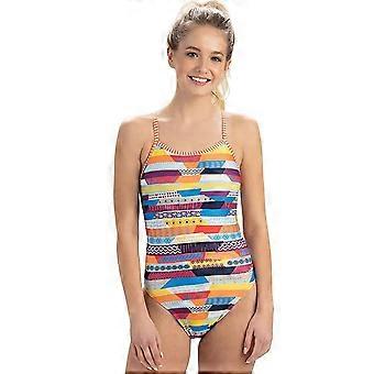 Train in the Girl´s Stripe Life Double Strap Keyhole Back Swimsuit which is unique and eye-catching from Dolfin Uglies. Printed with a vibrant multicoloured pattern, this swimsuit stands out and looks beautiful both in and out of the water.Constructed from a durable blend of polyester and spandex, this Uglies suit offers excellent durability and resistance to chlorine, while still ensuring a very comfortable and secure fit. The Swimsuit is fully lined to further the comfort of the suit.The double strap offers you with added comfort and support. Perfect for regular training sessions and leisurely trips to the pool.Features:Double StrapDurable MaterialMedium Leg HeightFully LinedBright Pattern/Print