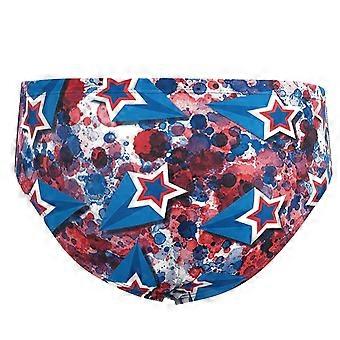 The men´s Liberty swimming briefs are a great choice for swim training and regular pool use. These Liberty print briefs feature an all-over patriotic USA flag inspired print. These colourful men´s swimming briefs are made with a blend of Reliance® fabric which is resistent to the effects of Chlorine and UV rays this ensures outstanding color and shape retention. The 4-way stretch material also allows for exceptional breathability and a soft comfortable fit. This light-weight material has low-water absorbency properties which make it quick-drying. The Dolfin Liberty swimming briefs have an inner lining for modesty and support, plus a discrete internal drawstring to achieve the perfect fit. Features: -All over USA Flag inspired print -Durable chlorine resistant material-Internal Lining -Internal Drawstring-Ideal for training Material: 91% Polyester / 9% Spandex