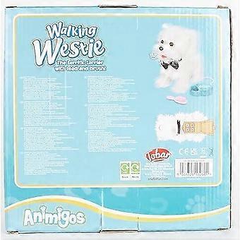 Press the buttons on the leash, and this delightful West Highland Terrier will walk around the room, yapping and wagging its tail just like a real dog.This cute, fluffy puppy is made even more adorable by its suave black necktie, making it irresistible to young children who long for a huggable, interactive friend.Part of the beloved Animigos range, this charming companion is sure to bring endless joy and entertainment.Perfect for playtime and cuddles, this walking Westie is the ideal addition to any toy collection.Recommended for children aged 18 months plus. Don´t miss out—adopt your own walking Westie today