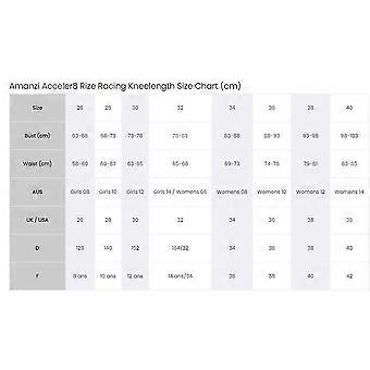 The AMANZI Acceler8 RIZE Kneelength – Jet is a World Aquatics Approved (formerly FINA) racing swimsuit, tailored to competitive swimmers across all levels. The Acceler8 RIZE has been built for peak performance with strong muscle control, superior comfort and excellent hydrodynamics. The Acceler8 RIZE offers a high level of compression, effectively reducing the accumulation of lactic acid and muscle fatigue, thereby elevating overall athletic performance. The structure of the AMANZI Acceler8 RIZE has been designed to ensure superior comfort and support. Strengthened shoulder and back straps have been strategically placed to sit between the shoulder blades to allow for maximum freedom of movement. The swimsuit is reinforced in high pressure points, has stitched low profile seams, silicone leg grippers and features full modesty lining to provide a comfortable and secure fit. The water-repellent coating enhances the hydrodynamics of the swimsuit, ensuring minimal water absorption and reducing drag as athletes surge through the water. Rise through the ranks and take your swimming to the next level with the AMANZI Acceler8 RIZE Kneelength. World Aquatic Approved (formerly FINA) - Approval No. MZ221293 Strong muscle compression Superior comfort Hydrophobic water repellent coating Excellent hydrodynamics Reinforced pressure points Stitched low profile seams Silicone leg grippers Full modesty lining Neoprene storage case